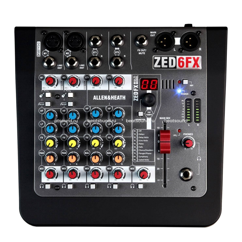 Компактный аналоговый микшер с 6-тью входами. Создан для гастролирующих музыкантов и певцов и является универсальным компаньоном для каждого этапа творческого пути. Благодаря новой конструкции предусилителя GSPre, созданной профессионалом мирового уровня Майком Гриффином, по аналогии с популярной студийной консолью GS-R24, ALLEN&HEATH ZED-6FX обладает исключительно низким уровнем шума, массивным запасом, с сигнатурой аналоговой теплоты и глубины. Точные элементы управления MusiQ EQ были тщательно разработаны и позволяют легко и точно формировать каждый музыкальный источник. Приятной неожиданностью для гитаристов будет наличие в микшере пары гитарных DI jack входов с высоким импедансом, которые позволяют подключать гитары напрямую в микшер, без всяких хлопот.