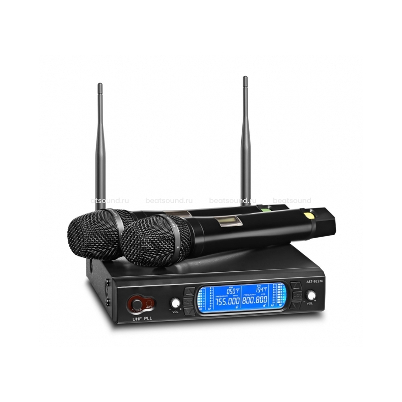 двухканальная беспроводная микрофонная система с двумя кардиоидными ручными передатчиками и одним двухканальным приёмником. Читать подробнее