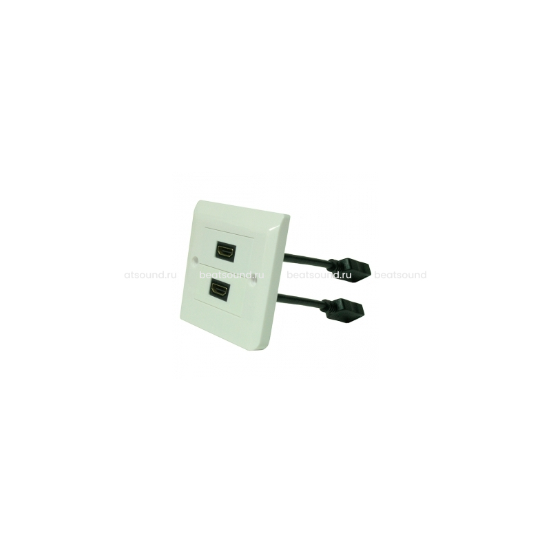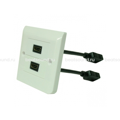HDMI розетка квадратной формы с закругленными углами в комплекте с рамкой. 2xHDMI с pigtail. Цвет белый. Читать подробнее