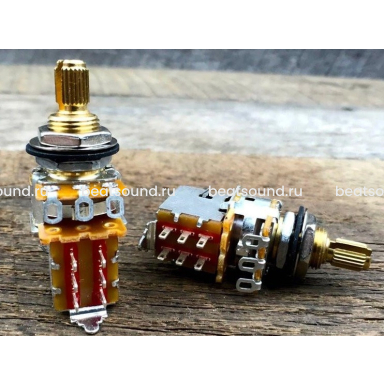 Внимание! Эти потенциометры требуют отверстий 9,52 мм в диаметре (американский дюймовый стандарт), на японских/корейских/китайских гитарах потребуется доработка (увеличение) отверстий под потенциометры в корпусе/панели гитары.