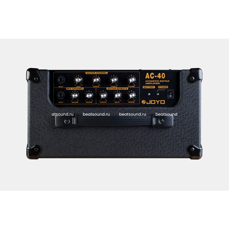 JOYO AC-40 - усилитель, разработанный со схемой усиления специально для акустических гитар, благодаря этому звук характеризуется красивымы и яркими высокими частотами с богатыми средне-низкими частотами. Мощность 20 Вт (20 Вт + 20 Вт) удовлетворит потребности для занятий дома, также её достаточно и для небольших живых выступлений. Гитарная часть AC-40 имеет 3 встроенных DSP-эффекта: Chorus, Delay и Reverb. Все эффекты могут использоваться одновременно. Читать подробнее