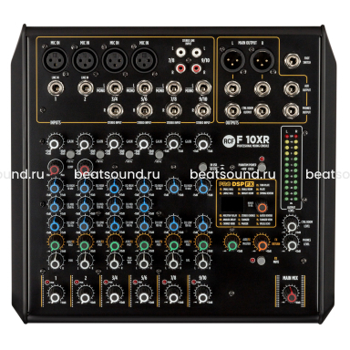 10-канальная микшерная консоль, 4 микрофонных входа, 2 моно линейных входа, 4 стерео линейных входа, 1 AUX/FX посыл, Main выходы, выход на наушники, разъем для футсвитча, USB порт, выходы Control Room, 16 встроенных эффектов PRO DSP FX, 3-полосный эквалайзер на моно каналах, 2-полосный эквалайзер на стерео каналах, внешний универсальный источник Читать подробнее -