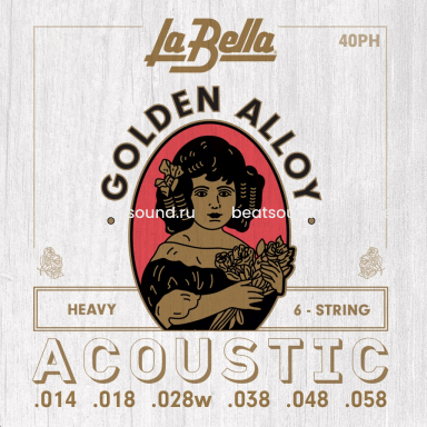 40PH Heavy Струны для акустической гитары. Оплетка басовых струн - специальный "золотой" сплав бронзы. 014 018 028W 038 048 058 La Bella Читать подробнее -