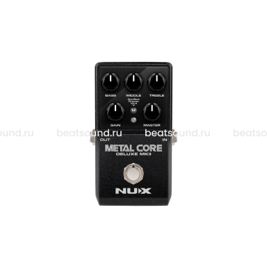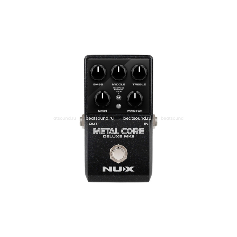 Metal-Core-Deluxe-MkII — это преамп педаль с высоким коэффициентом усиления, состоящая из трех различных моделей хай гейн усилителей, включая Duo Rect, Fireman и VH 4. Модель выбирается с помощью трехпозиционного переключателя.