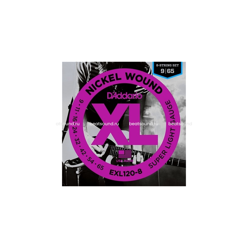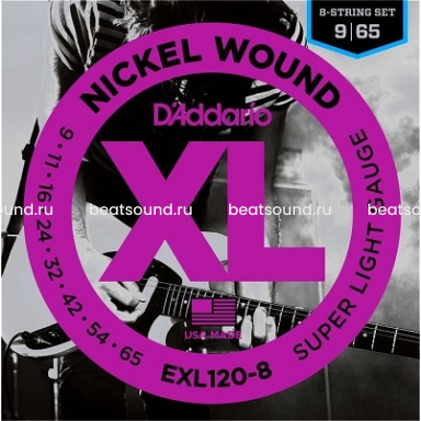 EXL120-8 Nickel Wound Комплект струн для 8-струнной электрогитары, Super Light, 9-65, D'Addario Читать подробнее