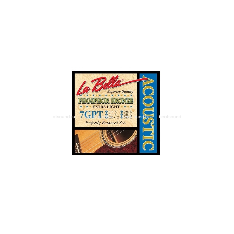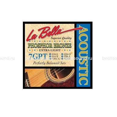 7GPT Extra Light Комплект струн для акустической гитары. Первые струны - сталь, басовые струны - стальной керн в оплетке из фосфорной бронзы. 010 014 020W 028 038 050 La Bella США Читать подробнее