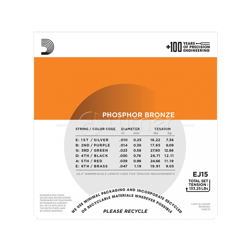 Самые тонкие струны D'Addario для акустических гитар, EJ15 идеальны для начинающих или музыкантов предпочитающих мягкое звучание и простоту игры бендов.