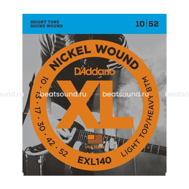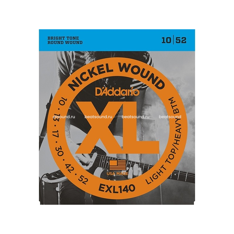 EXL140 один из самых популярных гибридных комплектов струн D'Addario. Сочетает первые струны комплекта EXL110 (.010) с более толстыми басовыми струнами (.052). Эта комбинация обеспечивает мощные низы для тяжелой игры аккордами и гибкие стальные струны для игры бэндом. Оптимизированны для понижения строя!