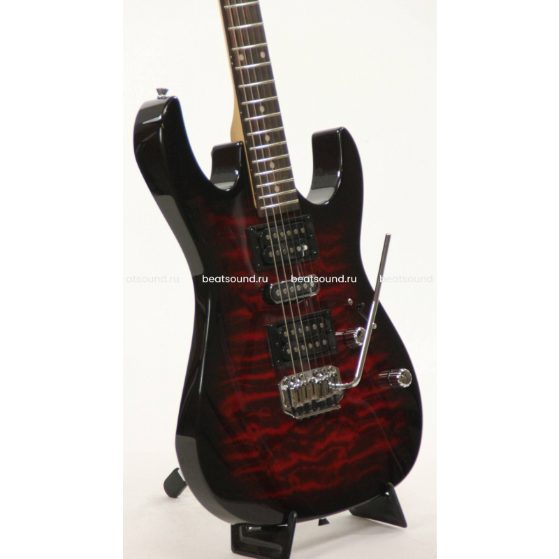 Электрогитара Ibanez GRX70QA-TRB имеет крепкий корпус из тополя с топом из узорчатого клёна, кленовый гриф радиусом 15,74 дюйма с накладкой из палисандра, 24 лада, обеспечивающие четыре полные октавы, звукосниматели Standard BH/MS/NH с пятипозиционным переключателем режимов работы, ручки общей громкости и тона - всё что нужно для начала занятий. Также стоит заметить, что топ из узорчатого клена в совокупности с сочным красным покрытием, создают поистине уникальный по своей красоте инструмент. Учитывая прекрасную эргономику, позволяющую репетировать часами, и качественную, хотя и бюджетную, электронику, вкупе с привлекательным внешним видом, вы можете считать, что уже нашли свой первый инструмент, который поведёт вас к вершинам гитарного мастерства.