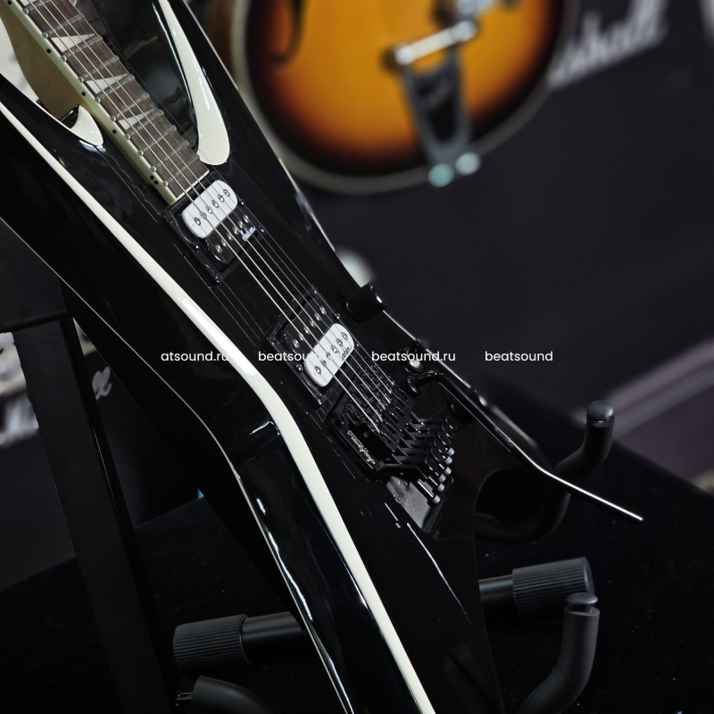 электрогитара, цвет черный с белыми гранями, корпус липа, гриф клен с графитовым усилением - крепление на болтах, накладка палисандр, 24 лада Jumbo, мензура 25.5, звукосниматели Jackson® High Output Zebra Humbucking, бридж Jackson® Licensed Double Locking Floyd Rose® Читать подробнее