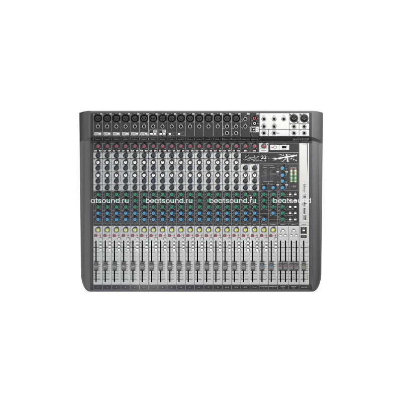 Soundcraft Signature 22 – компактный 22-канальный аналоговый микшерный пульт от знаменитого английского производителя. Микшеры линейки Signature – это высокопроизводительные консоли, которые известны своим отличным качеством и великолепным, очень чистым звуком, они отличаются широким динамическим диапазоном и впечатляющим соотношением сигнал/шум. Модель оборудована 16 микрофонными предусилителями Soundcraft® Ghost, которые обычно устанавливаются на топовые модели, высококачественными 100-мм фейдерами и четырехполосным эквалайзером Soundcraft® Sapphyre. Предусмотрены разъемы XLR и входы Hi-Z для прямого подключения гитар и других инструментов. Возможности коммутации включают также наличие двух входов USB и двух выходов. Модель оснащена набором встроенных эффектов Lexicon студийного качества, включая реверберацию, хорус, модуляцию и другие. Микшер Signature 22 способен длительное время работать в самых жестких условиях концертных площадок и туров, он заключен в прочный и надежный металлический корпус, оснащен универсальным встроенным блоком питания.