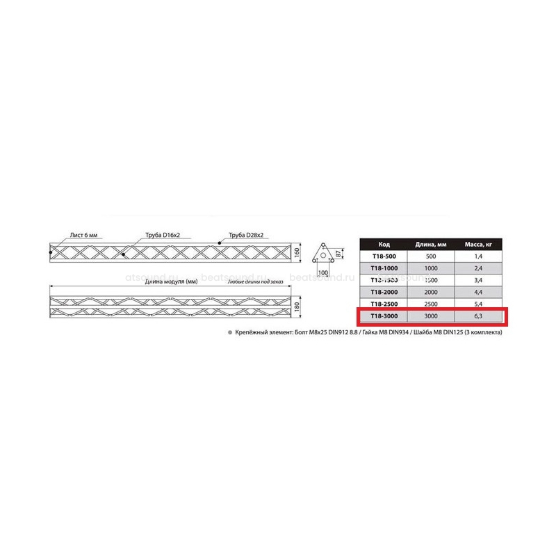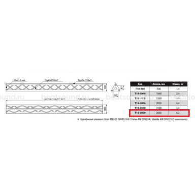Прямой модуль треугольной конфигурации длиной 3000мм, d28х2 \ d16х2мм. Крепежный размер 100мм, М8. Рисунок перемычек круговой. Читать подробнее