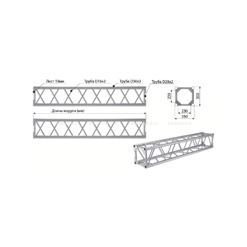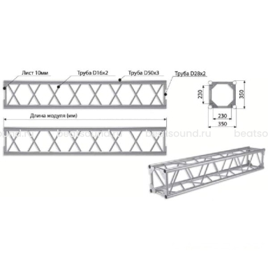 IMLIGHT Q2-2000 Прямой модуль квадратной конфигурации длиной 2000мм, 350x350мм, d50x3 \ d16x2мм. Крепежный размер 230х230мм, М10. Рисунок перемычек круговой. Читать подробнее