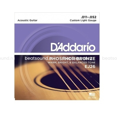 EJ26 PHOSPHOR BRONZE Струны для акустической гитары фосфорная бронза Custom Light 11-52 D`Addario Читать подробнее