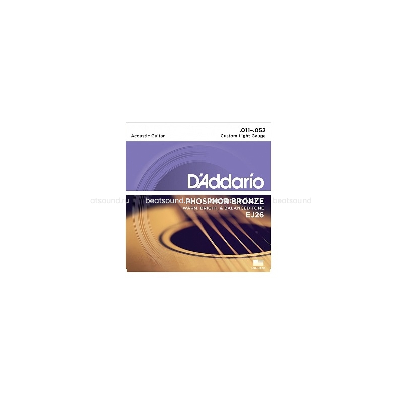 Струны EJ26, названные Custom Light, являются оригинальным гибридом толщины от компании D'Addario. Удобный компромисс для музыкантов ищущих глубину и отчетливость тонких струн, но предпочитающих меньшее натяжение для исполнения бендов.