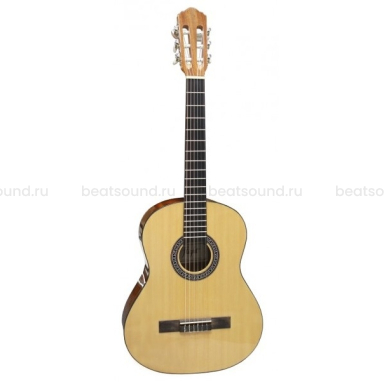 Верхняя дека изготовлена из ели, что обеспечивает чистое звучание, так необходимое для грамотного развития слуха. Нижняя дека и обечайки из сапеле, породы дерева по свойствам очень схожим с красным деревом, благодаря чему звук приобретает мягкость и глубину. Достаточно толстая, порядка 6 мм, палисандровая накладка на грифе создает в руке ощущение приятной весомости и надежности.