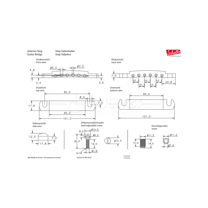 SCHALLER 12050200 (49061) Stop Tailpiece CH бридж (струнодержатель)