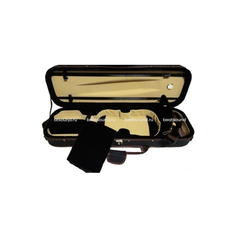 Кейс для скрипки прямоугольный, люкс, супер облегчённый, место для моста и 4-х смычков, большой карман для нот, две лямки, чёрный Читать подробнее