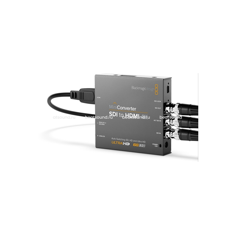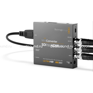 Mini Converter SDI to HDMI 4K имеет все необходимое для передачи SD-, HD-, 3G- и 6G-SDI-видеосигнала на HDMI-оборудование в SD-, HD- и Ultra HD-видеоформатах. Эта модель также позволяет извлекать звук из потока для вывода на HDMI-, AES/EBU- и сбалансированные аналоговые аудиовыходы. Благодаря этой модели телевизоры с большим экраном и видеопроекторы станут вещательными видеомониторами! С помощью встроенной функции понижающей конверсии можно просматривать Ultra HD-видеоматериал на телевизорах HD. Читать подробнее
